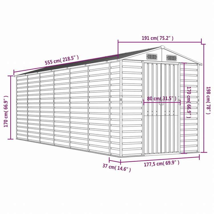 vidaXL 庭用物置 アントラシート 191x555x198 cm 亜鉛メッキ鋼製ホーム&ガーデン 芝&ガーデン アウトドアリビング アウトドアストラクチャー 日除け・ガレージ・カーポート(代引不可)