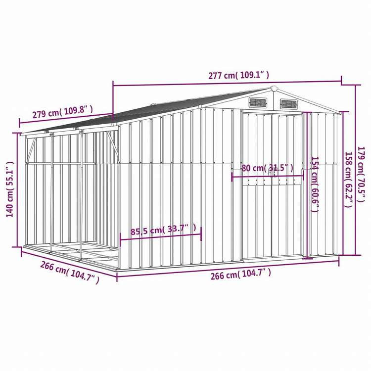 vidaXL 庭用納屋 277x279x179cm 亜鉛メッキ鋼製 アントラシートホーム&ガーデン 芝&ガーデン アウトドアリビング アウトドアストラクチャー 日除け・ガレージ・カーポート(代引不可)