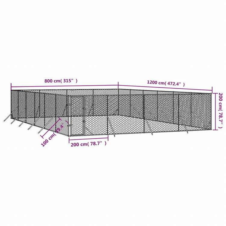 vidaXL 屋外用犬小屋 シルバー 8x12x2m 亜鉛メッキ鋼製Animals & Pet Supplies ペット用品 犬用品 犬小屋・ドッグラン(代引不可)
