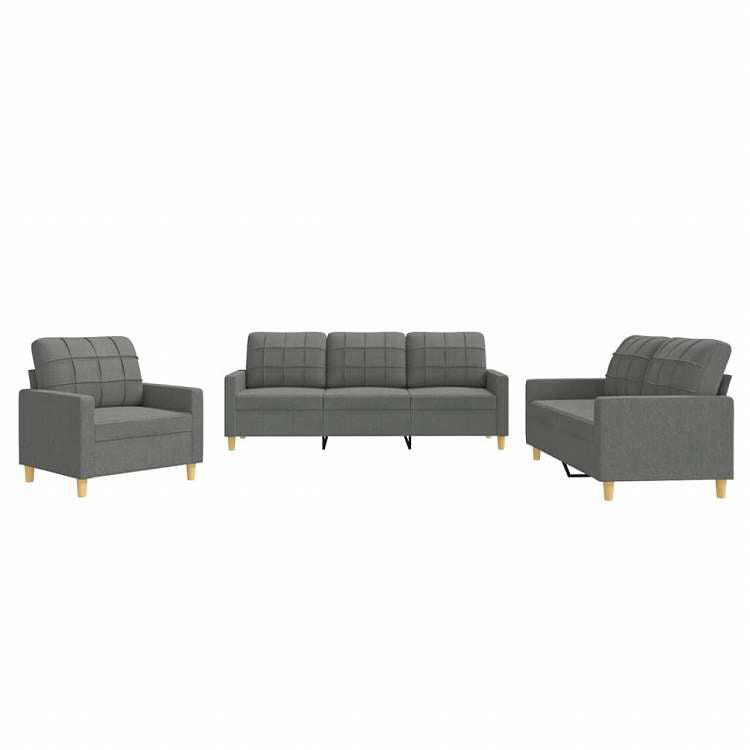 vidaXL ソファ3点セット クッション付 ダークグレー 布張り家具 ソファ(代引不可)