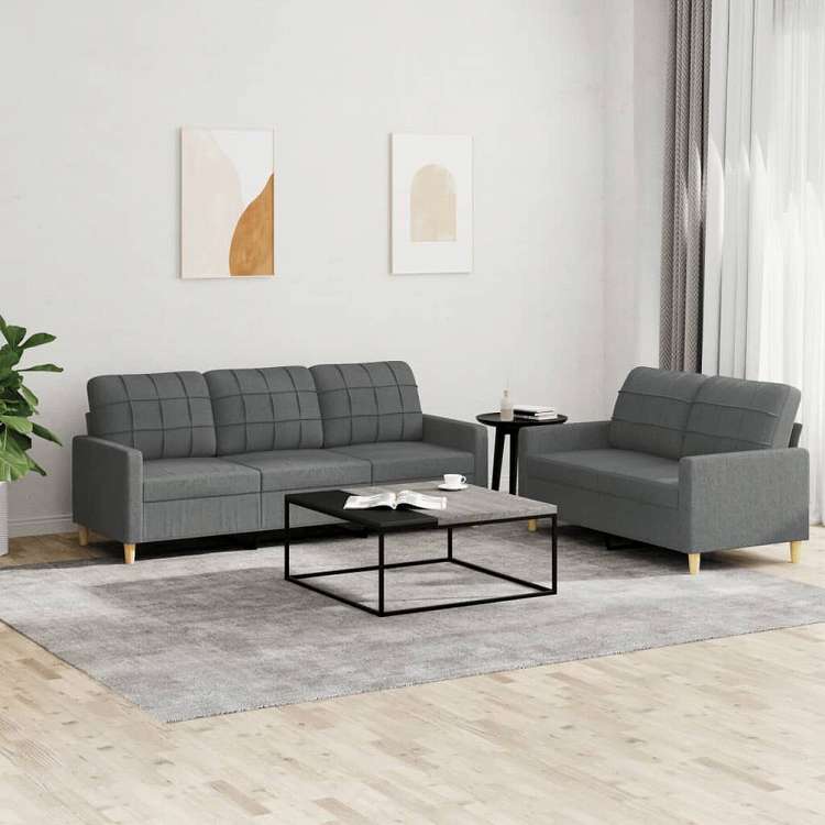 vidaXL ソファ2点セット クッション付 ダークグレー 布張り家具 ソファ(代引不可)