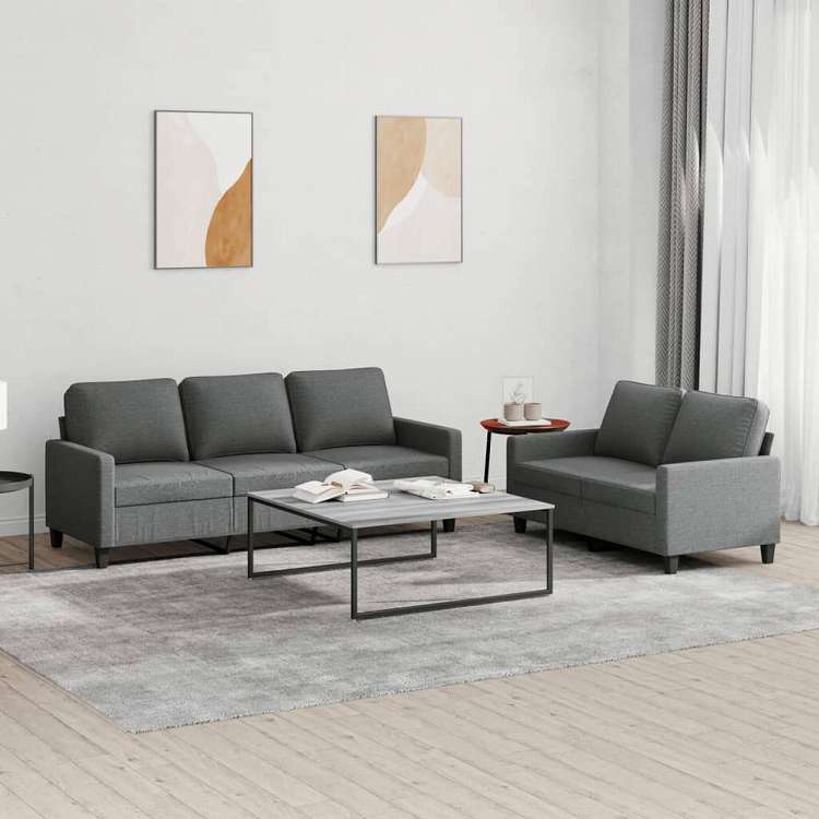 vidaXL ソファ2点セット クッション付 ダークグレー 布張り家具 ソファ(代引不可)