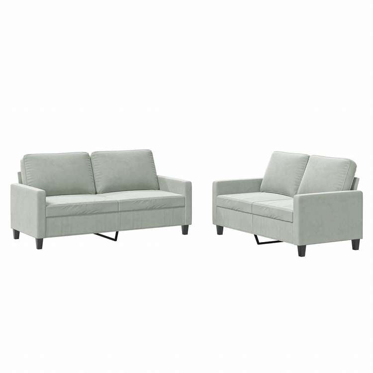 vidaXL ソファ2点セット クッション付 ライトグレー ベルベット家具 ソファ(代引不可)