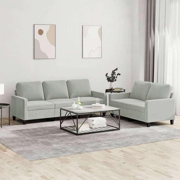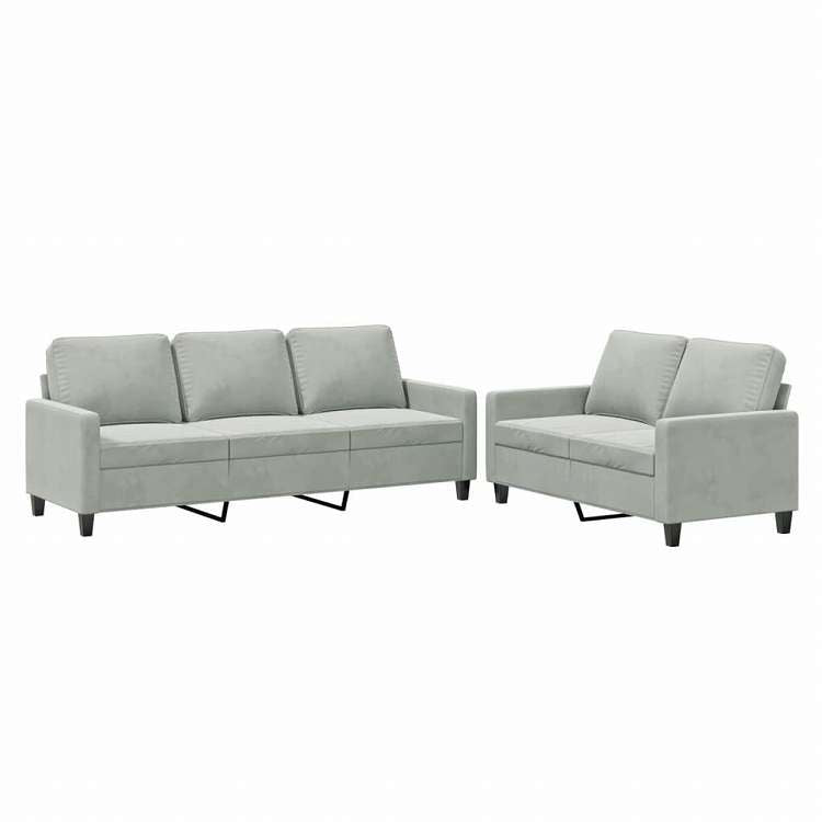 vidaXL ソファ2点セット クッション付 ライトグレー ベルベット家具 ソファ(代引不可)