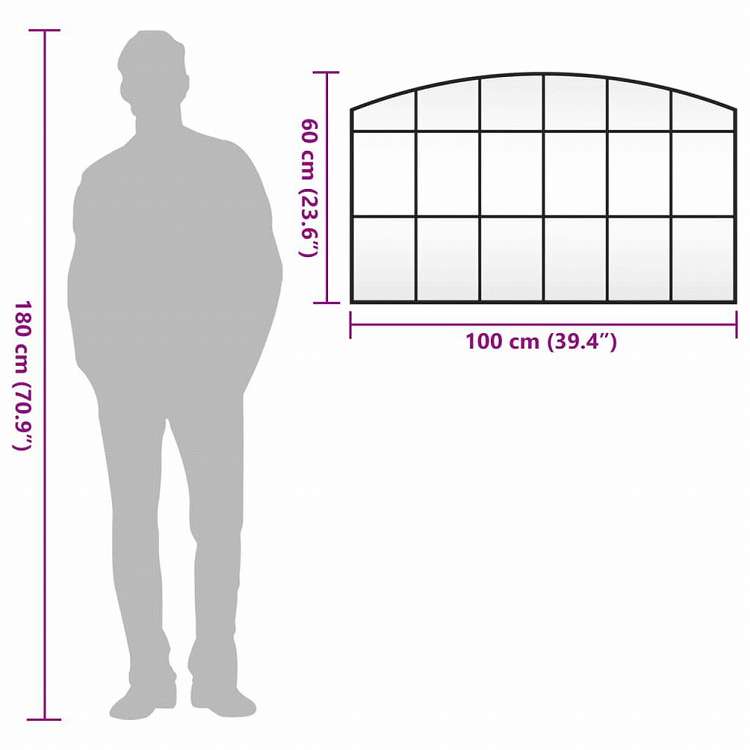 vidaXL ウォールミラー ブラック 100x60 cm アーチ型 鉄製ホーム&ガーデン デコレーション 鏡(代引不可)