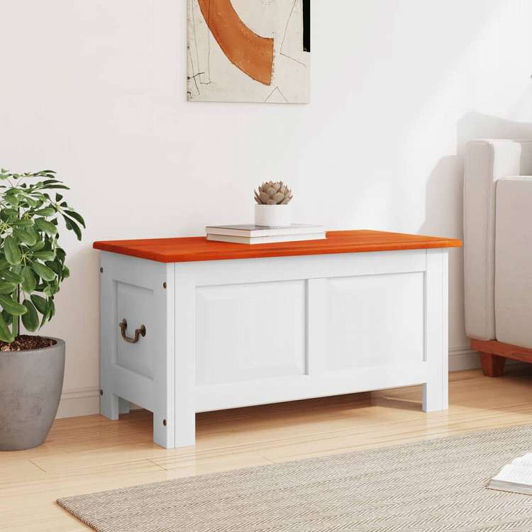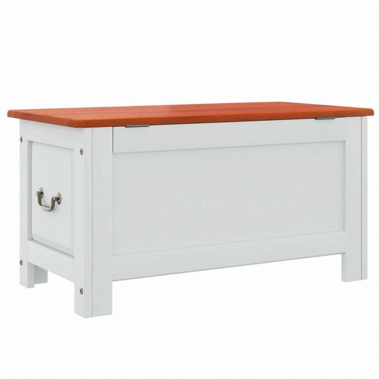 vidaXL 収納チェスト ふた付き ブラウン&ホワイト アカシア無垢材家具 キャビネット&収納 収納チェスト(代引不可)