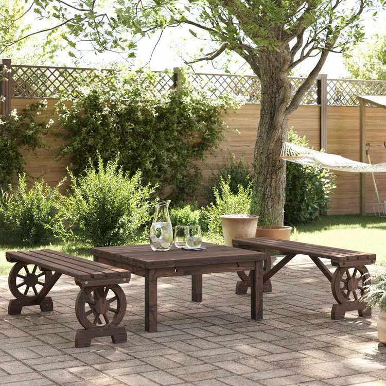■魅力的なデザイン:この屋外用ベンチは、あらゆる角度から人目を引くワゴンホイールデザインを特徴としています。 便利情報:アウトドア家具の美しさを保つため、防水カバーをかぶせておくことを推奨します。材質:モミ無垢材(焦げた風合い)