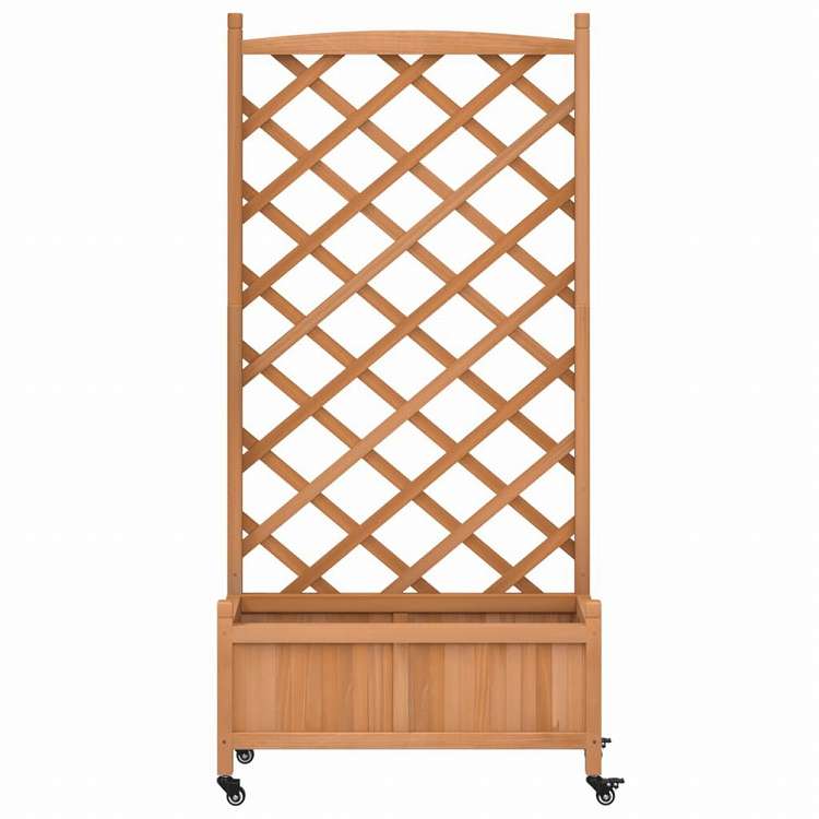 vidaXL プランター トレリス&キャスター付き ブラウン モミ無垢材ホーム&ガーデン 芝&ガーデン ガーデニング 鉢植え・プランター(代引不可)