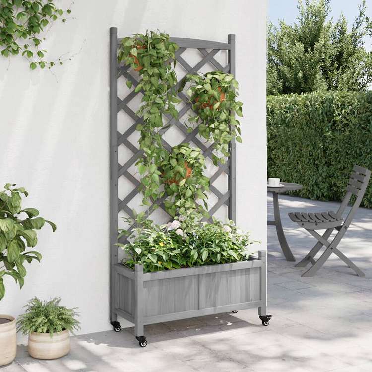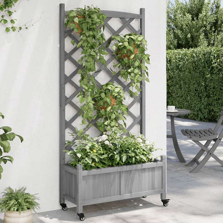 vidaXL プランター トレリス&キャスター付き グレー モミ無垢材ホーム&ガーデン 芝&ガーデン ガーデニング 鉢植え・プランター(代引不可)