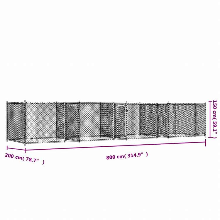 vidaXL 犬用ケージ ドア付き グレー 8x2x1.5 m 亜鉛メッキ鋼動物&ペット用品 ペット用品 犬用品 犬小屋・ドッグラン(代引不可)