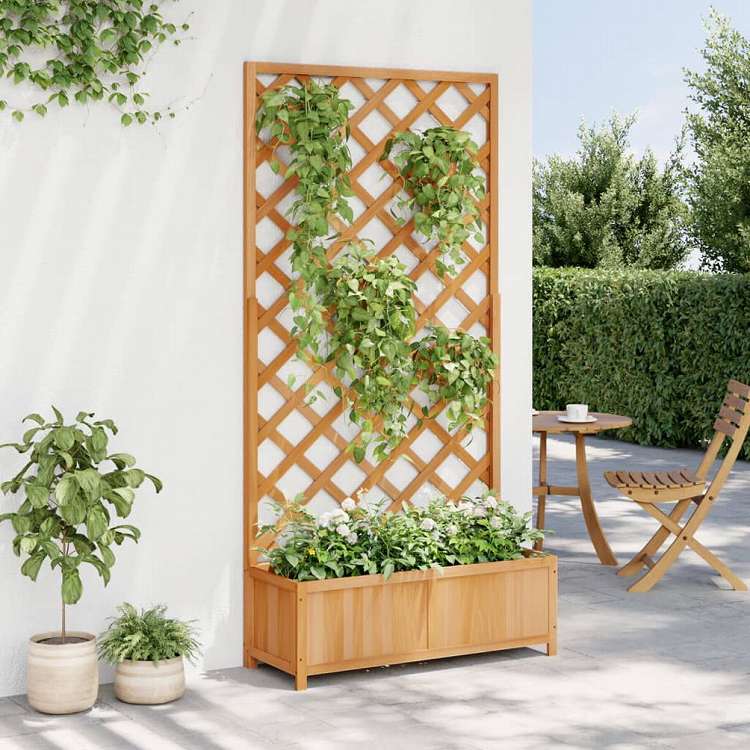 ■トレリス付きの木製プランターは庭やパティオ、テラスでつる性の植物を育てるのにぴったりです。 モミ無垢材:モミ無垢材は、湿気にさらされても完全性を維持する美しく耐久性のある素材です。乾燥や反りがないので、信頼できる素材です。