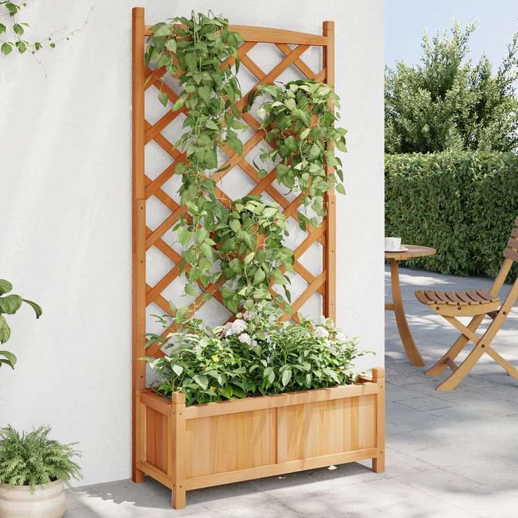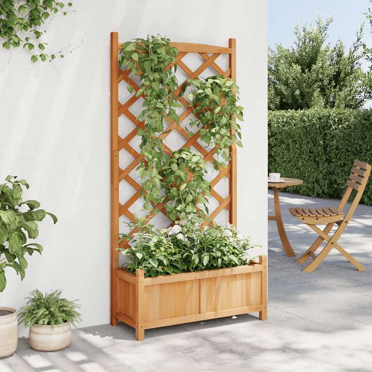 ■トレリス付きの木製プランターは庭やパティオ、テラスでつる性の植物を育てるのにぴったりです。 モミ無垢材:モミ無垢材は、湿気にさらされても完全性を維持する美しく耐久性のある素材です。乾燥や反りがないので、信頼できる素材です。