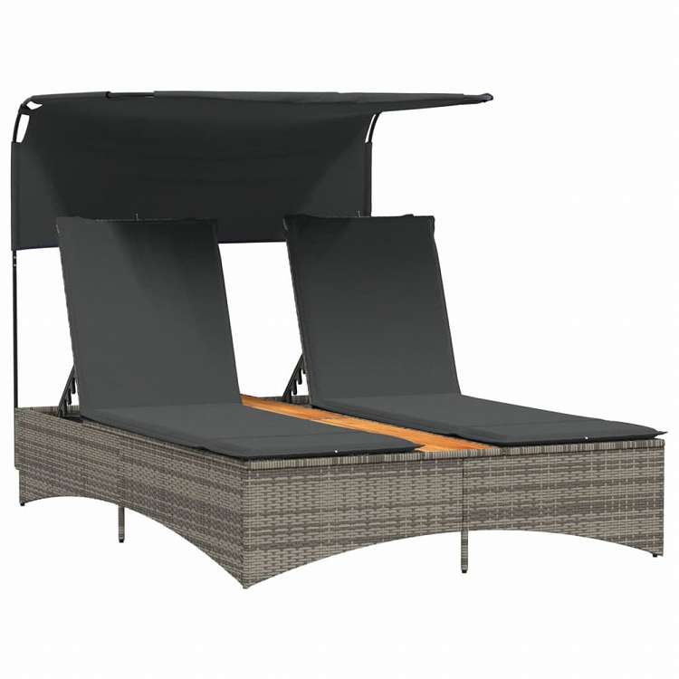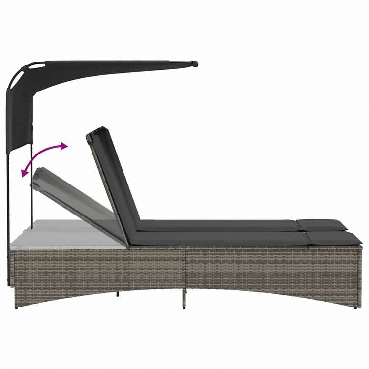 vidaXL ダブルサンラウンジャー キャノピー&クッション付き グレー ポリラタン家具 アウトドア家具 屋外椅子 サンラウンジャー(代引不可)