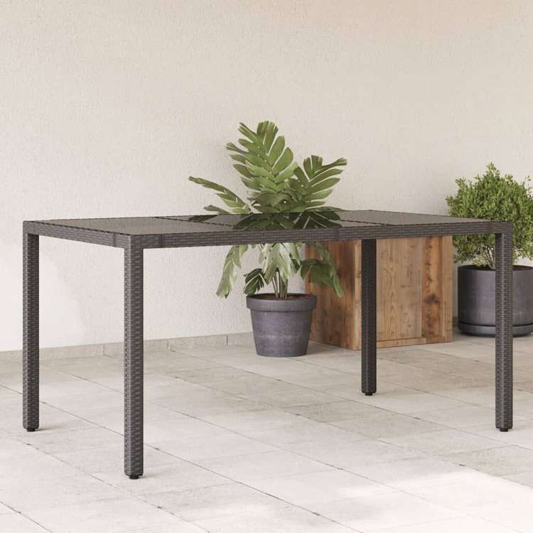 vidaXL ガーデンテーブル ガラストップ付き 150x90x75 cm ポリラタン製 ブラック家具 アウトドア家具 アウトドアテーブル(代引不可)