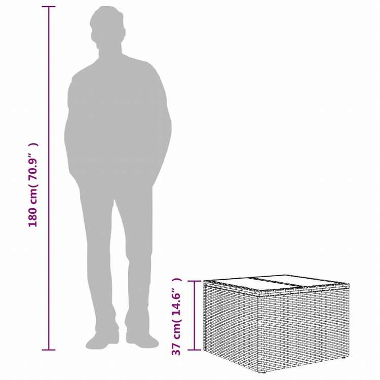 vidaXL ガーデンテーブル ガラス天板付 グレー 55x55x37 cm ポリラタン製家具 アウトドア家具 アウトドアテーブル(代引不可)