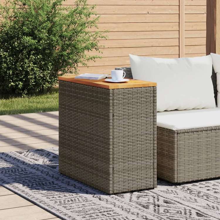 vidaXL ガーデンサイドテーブル 木製天板付 グレー 58x27.5x55 cm ポリラタン製家具 アウトドア家具 アウトドアテーブル(代引不可)