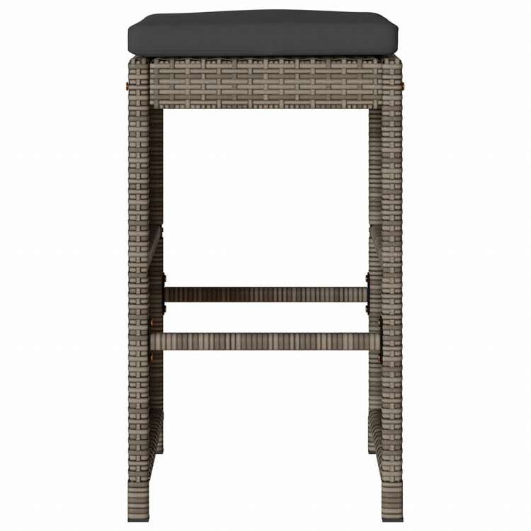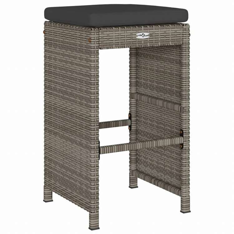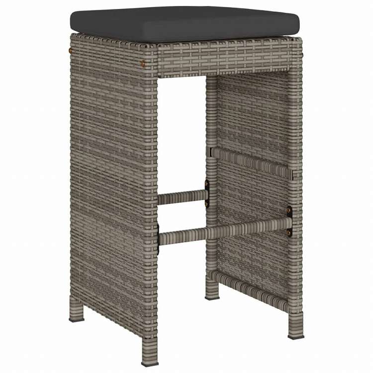 vidaXL ガーデンバースツール 4点 クッション付き ポリラタン製 グレー家具 アウトドア家具 屋外椅子 アウトドアベンチチェア(代引不可)