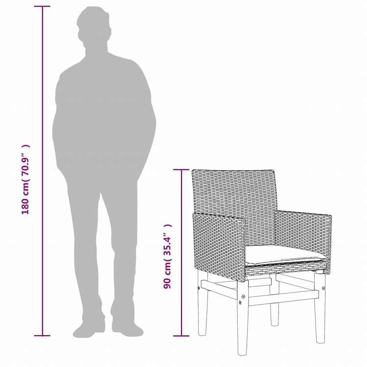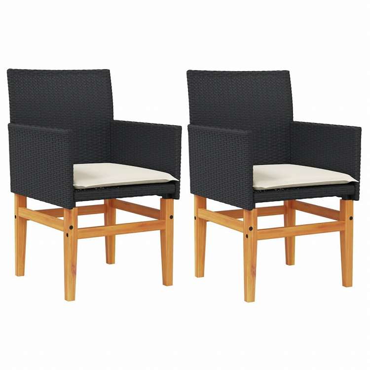 vidaXL ガーデンチェア クッション付き 2点 ブラック ポリラタン&無垢材家具 アウトドア家具 屋外椅子 アウトドアベンチチェア(代引不可)