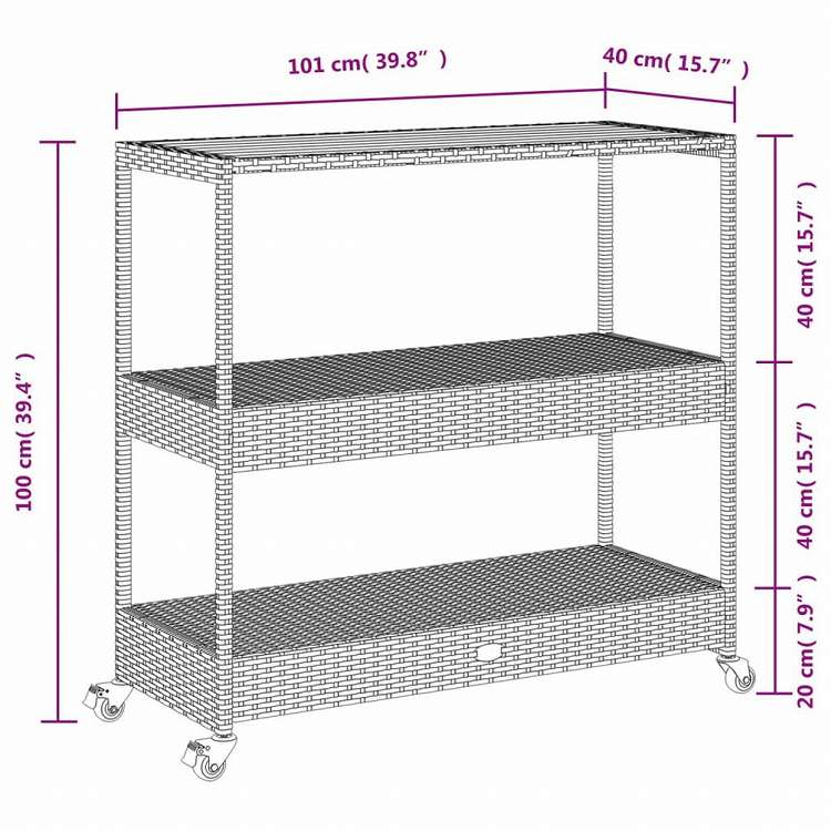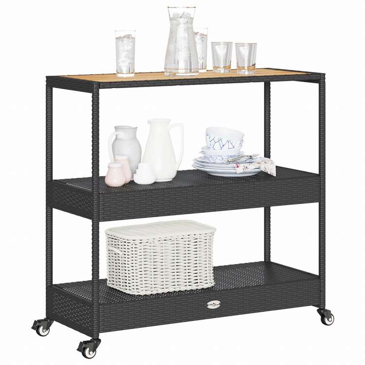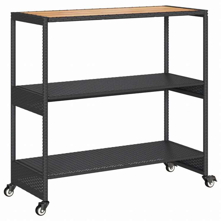 vidaXL バーカート 3段 ブラック ポリラタン&アカシア無垢材家具 トローリー キッチン・ダイニング トローリー(代引不可)