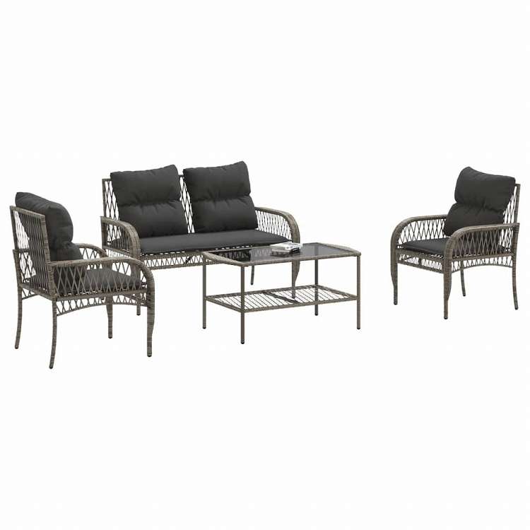 vidaXL ガーデンソファ4点セット クッション付き 灰色 ポリラタン製家具 アウトドア家具 屋外家具セット(代引不可)