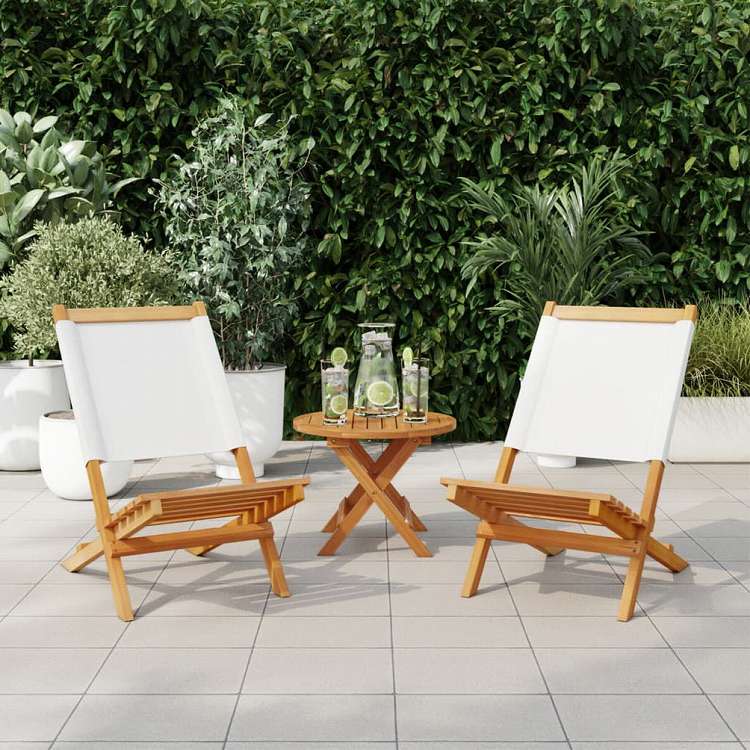 vidaXL ガーデンチェア 2点 クリームホワイト アカシア無垢材&ファブリック家具 アウトドア家具 屋外椅子 アウトドアベンチチェア(代引不可)