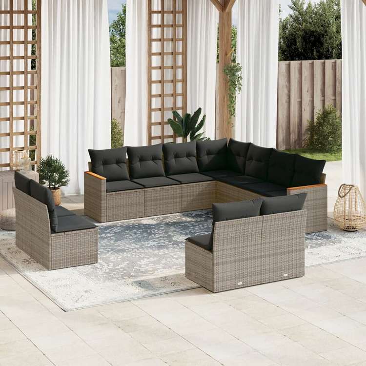 vidaXL ガーデンソファ11点セット クッション付き ポリラタン製 グレー家具 アウトドア家具 屋外家具セット(代引不可)