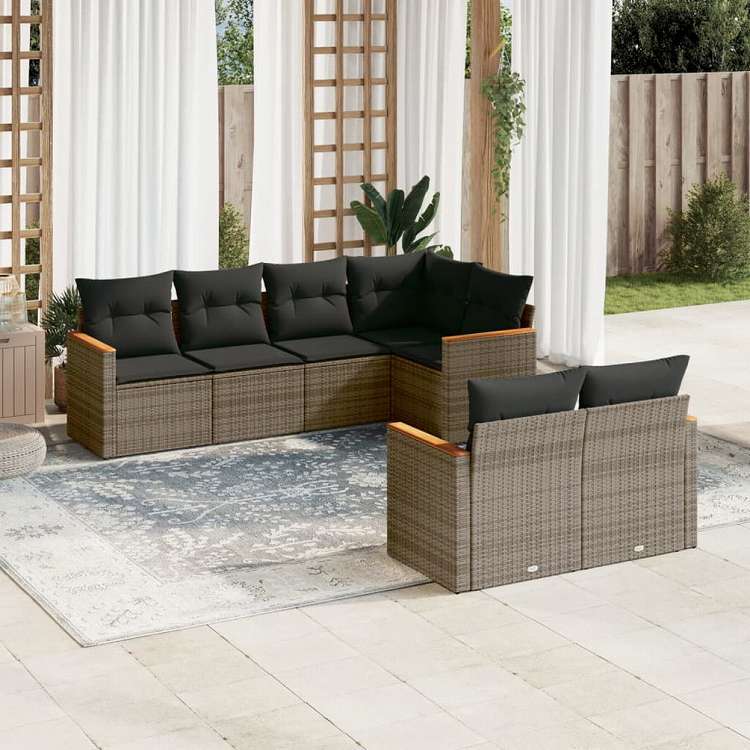vidaXL ガーデンソファ7点セット クッション付き グレー ポリラタン家具 アウトドア家具 屋外家具セット(代引不可)