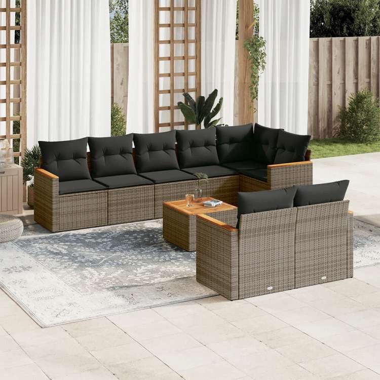 vidaXL ガーデンソファ9点セット クッション付き ポリラタン製 グレー家具 アウトドア家具 屋外家具セット(代引不可)