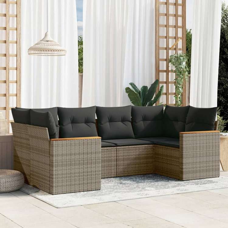 vidaXL ガーデンソファ6点セット クッション付き グレー ポリラタン製家具 アウトドア家具 屋外家具セット(代引不可)