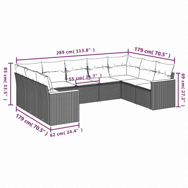 vidaXL ガーデンソファ9点セット クッション付き ポリラタン製 グレー家具 アウトドア家具 屋外家具セット(代引不可)