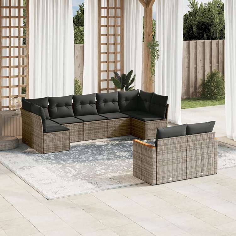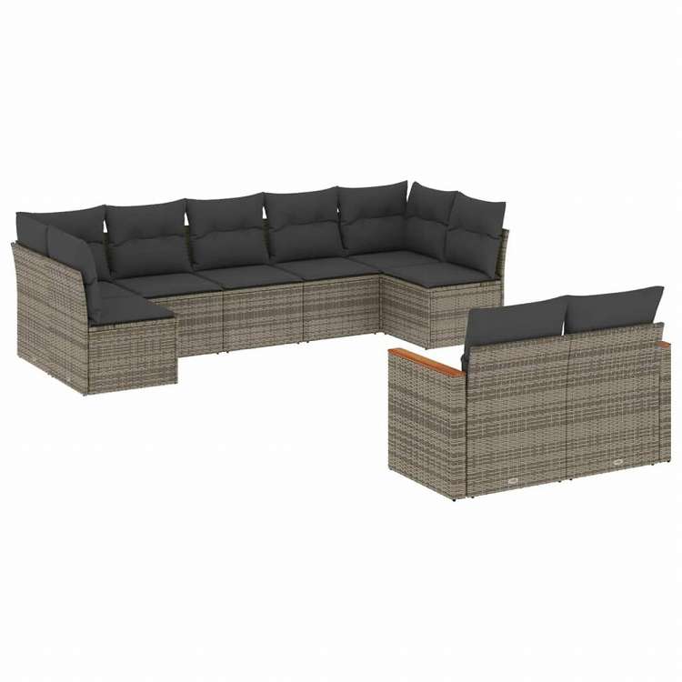 vidaXL ガーデンソファ9点セット クッション付き ポリラタン製 グレー家具 アウトドア家具 屋外家具セット(代引不可)