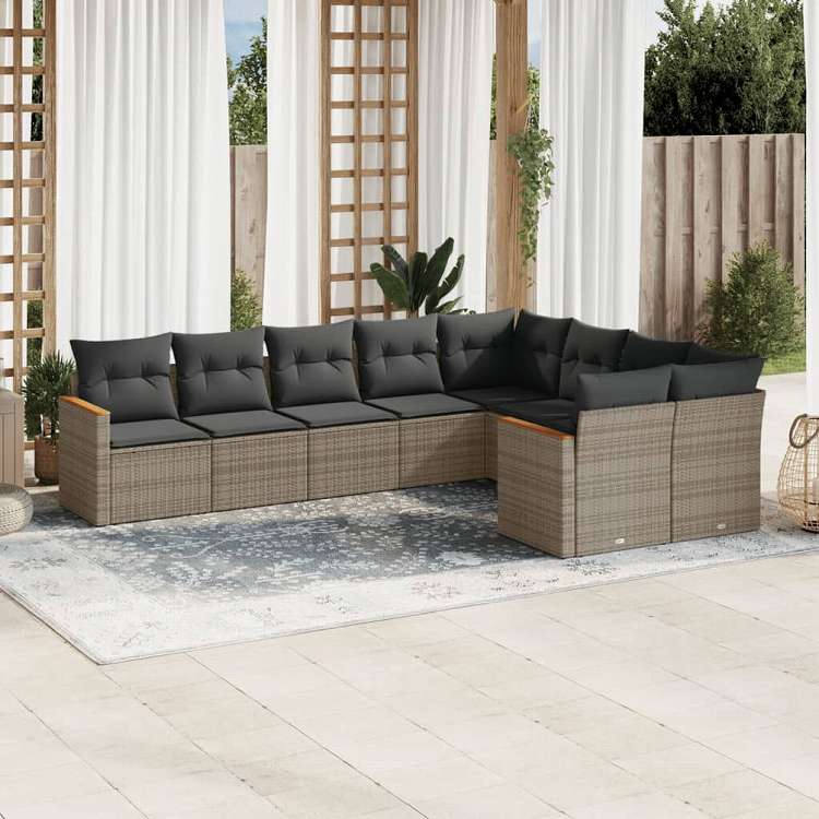 vidaXL ガーデンソファ9点セット クッション付き ポリラタン製 グレー家具 アウトドア家具 屋外家具セット(代引不可)