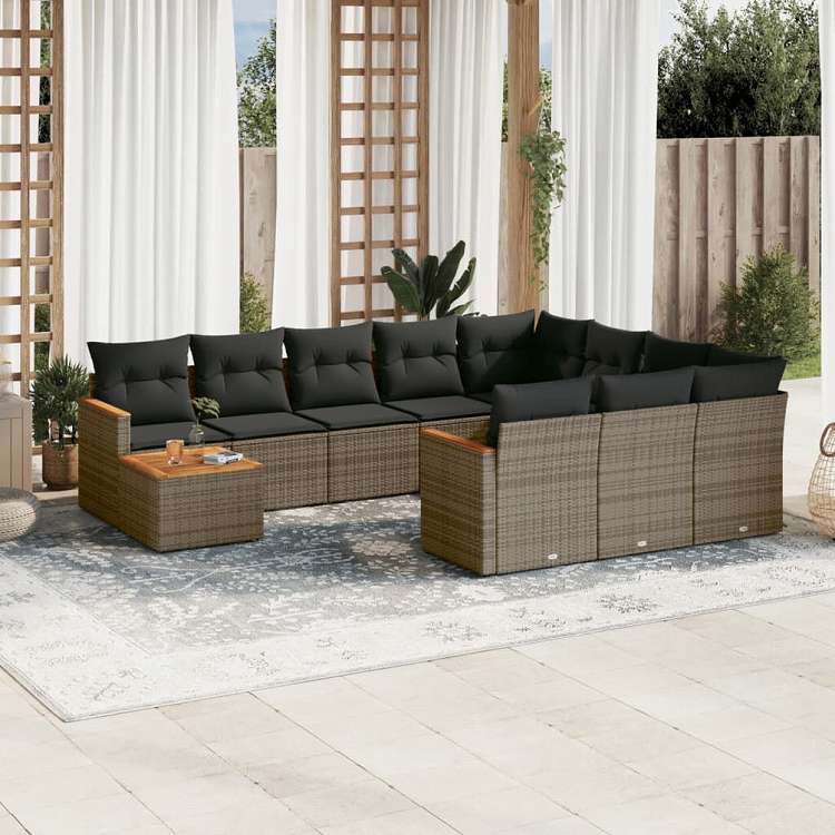 vidaXL ガーデンソファ11点セット クッション付き ポリラタン製 グレー家具 アウトドア家具 屋外家具セット(代引不可)