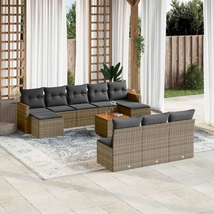 vidaXL ガーデンソファ11点セット クッション付き ポリラタン製 グレー家具 アウトドア家具 屋外家具セット(代引不可)