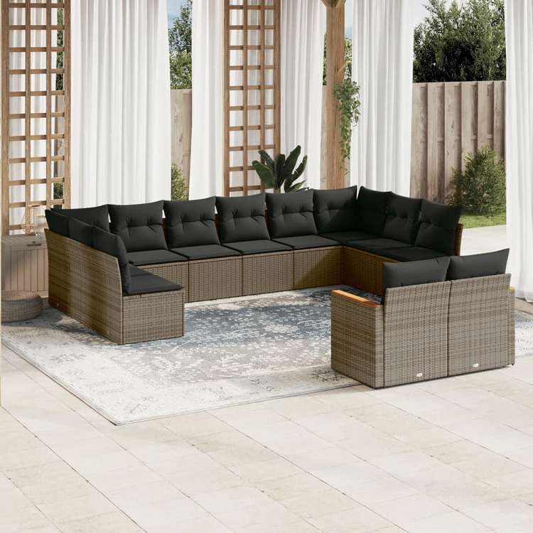 vidaXL ガーデンラウンジ12点セット クッション付き グレー ポリラタン製家具 アウトドア家具 屋外家具セット(代引不可)