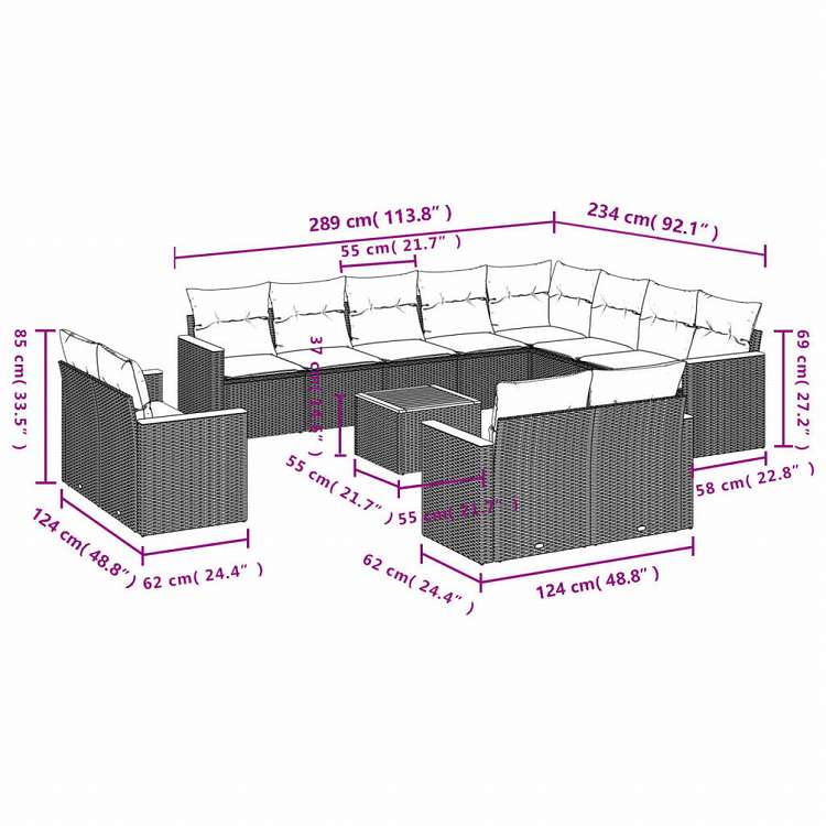 vidaXL ガーデンラウンジ13点セット クッション付き グレー ポリラタン製家具 アウトドア家具 屋外家具セット(代引不可)