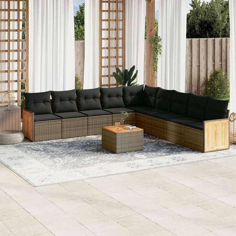 vidaXL ガーデンソファ10点セット クッション付き ポリラタン製 グレー家具 アウトドア家具 屋外家具セット(代引不可)