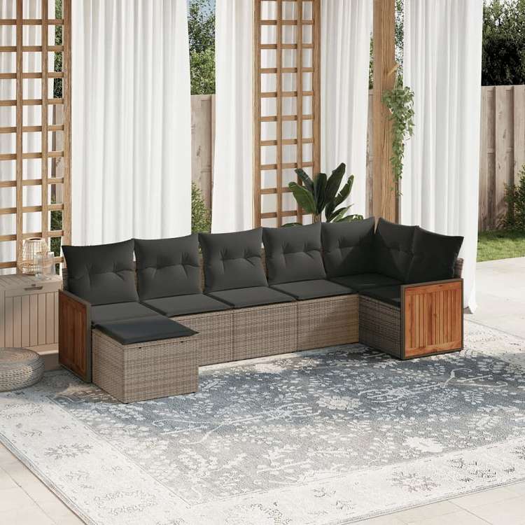 vidaXL ガーデンソファ7点セット クッション付き グレー ポリラタン家具 アウトドア家具 屋外家具セット(代引不可)