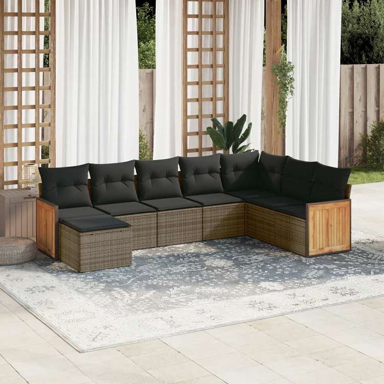 vidaXL ガーデンラウンジ8点セット クッション付き グレー ポリラタン製家具 アウトドア家具 屋外家具セット(代引不可)