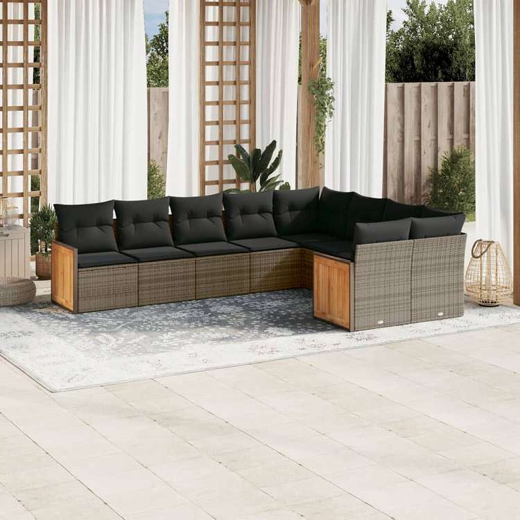 vidaXL ガーデンソファ9点セット クッション付き ポリラタン製 グレー家具 アウトドア家具 屋外家具セット(代引不可)