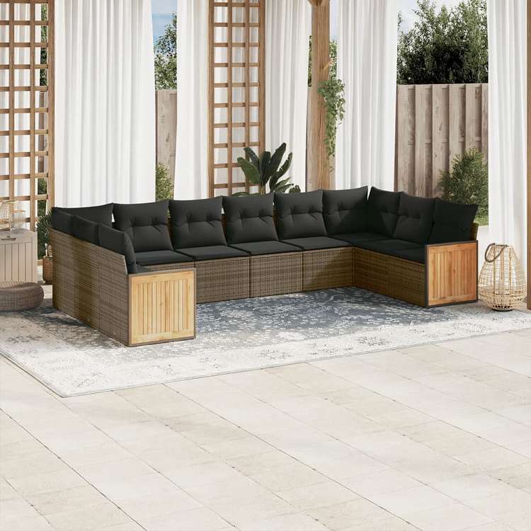 vidaXL ガーデンソファ10点セット クッション付き ポリラタン製 グレー家具 アウトドア家具 屋外家具セット(代引不可)