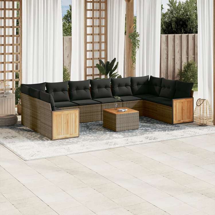 vidaXL ガーデンソファ11点セット クッション付き ポリラタン製 グレー家具 アウトドア家具 屋外家具セット(代引不可)