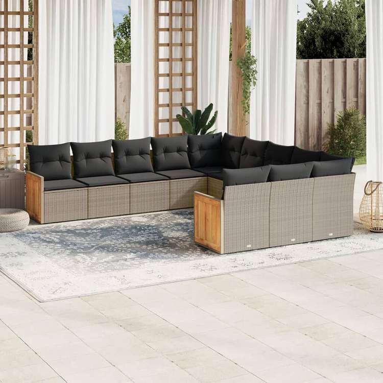 vidaXL ガーデンソファ11点セット クッション付き ポリラタン製 グレー家具 アウトドア家具 屋外家具セット(代引不可)
