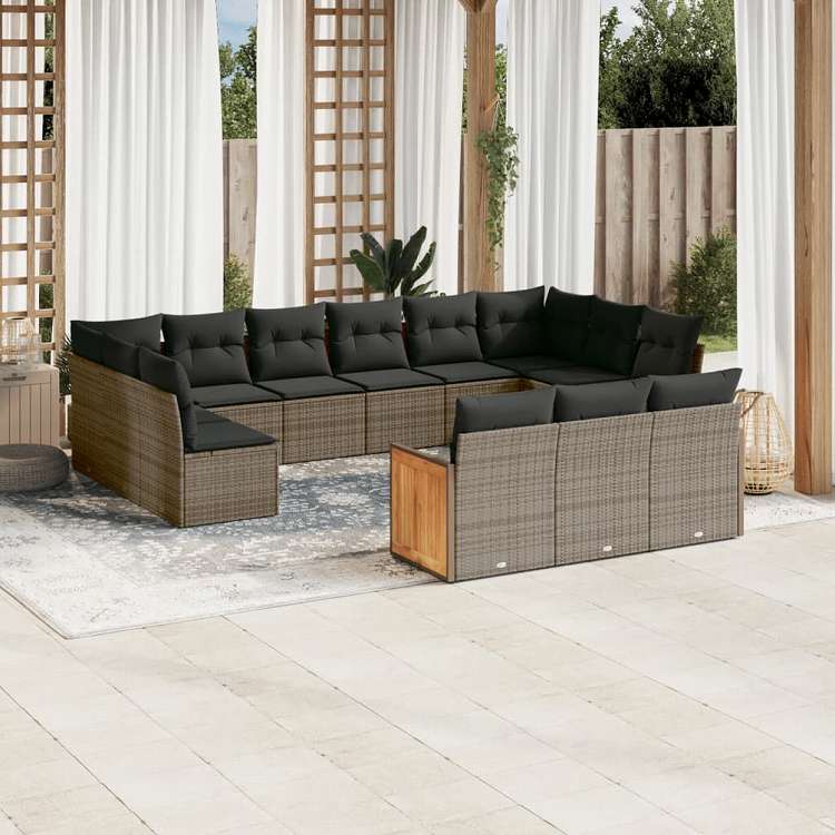 vidaXL ガーデンラウンジ13点セット クッション付き グレー ポリラタン製家具 アウトドア家具 屋外家具セット(代引不可)