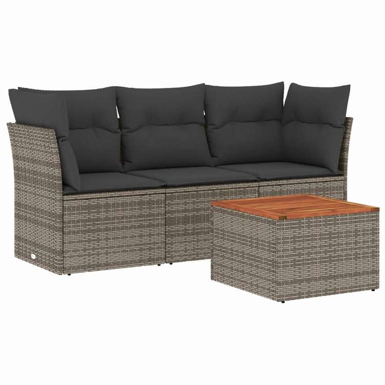vidaXL ガーデンソファ4点セット クッション付き 灰色 ポリラタン製家具 アウトドア家具 屋外家具セット(代引不可)
