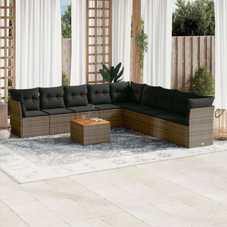 vidaXL ガーデンソファ10点セット クッション付き ポリラタン製 グレー家具 アウトドア家具 屋外家具セット(代引不可)
