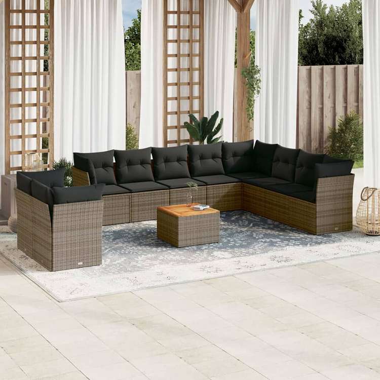 vidaXL ガーデンソファ11点セット クッション付き ポリラタン製 グレー家具 アウトドア家具 屋外家具セット(代引不可)