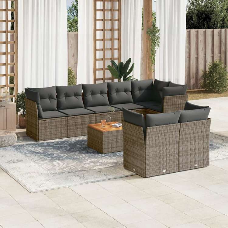 vidaXL ガーデンソファ9点セット クッション付き ポリラタン製 グレー家具 アウトドア家具 屋外家具セット(代引不可)