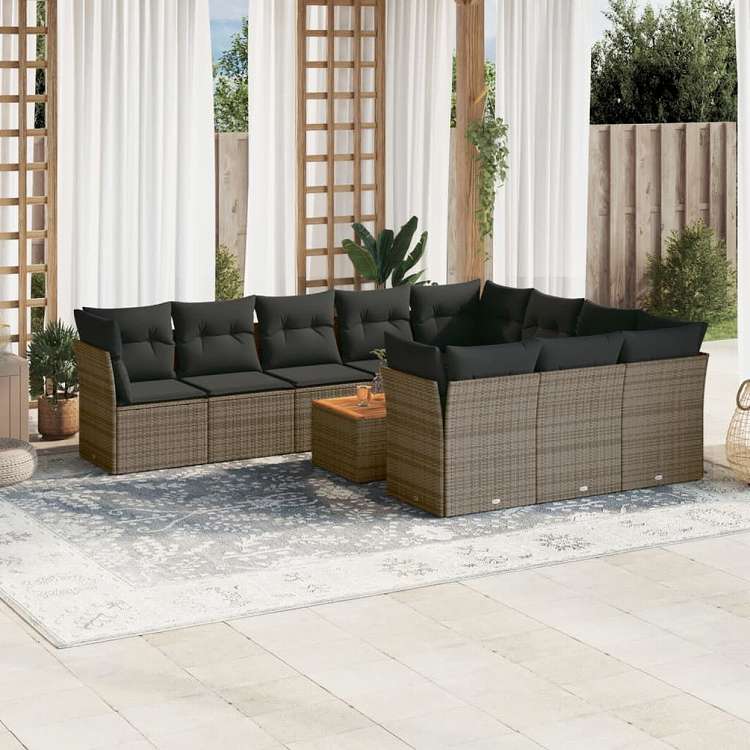 vidaXL ガーデンソファ11点セット クッション付き ポリラタン製 グレー家具 アウトドア家具 屋外家具セット(代引不可)