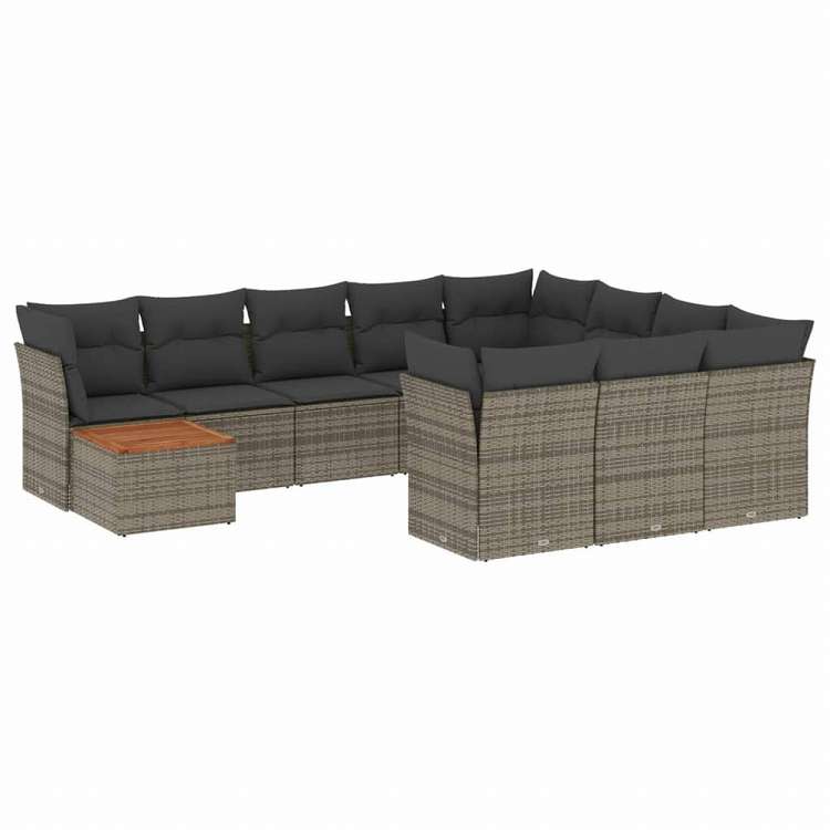 vidaXL ガーデンソファ11点セット クッション付き ポリラタン製 グレー家具 アウトドア家具 屋外家具セット(代引不可)